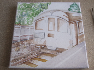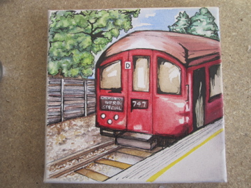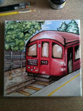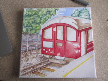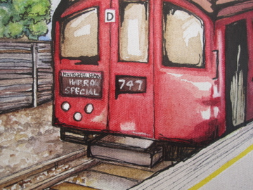 This year I tried a few fall painting sketches, but nothing seemed to be clicking, and the deadline for sending was getting closer and closer, so I thought maybe something a bit more English might be a nice inclusion for the show (every year I’m thanked for making it an international event, which I think is very sweet.) I went back to some pictures from a great day out- a heritage day presented by TFL and the London Transport museum, where you could take a ride on their vintage tube trains! We got to travel on a gorgeous 1938 Northern Line Stock car, and took it up to Amersham (slightly inaccurate to have a Northern Line train on the Metropolitan line, but hey, it was nicer to see the countryside than the inside of the Northern line tunnels!)