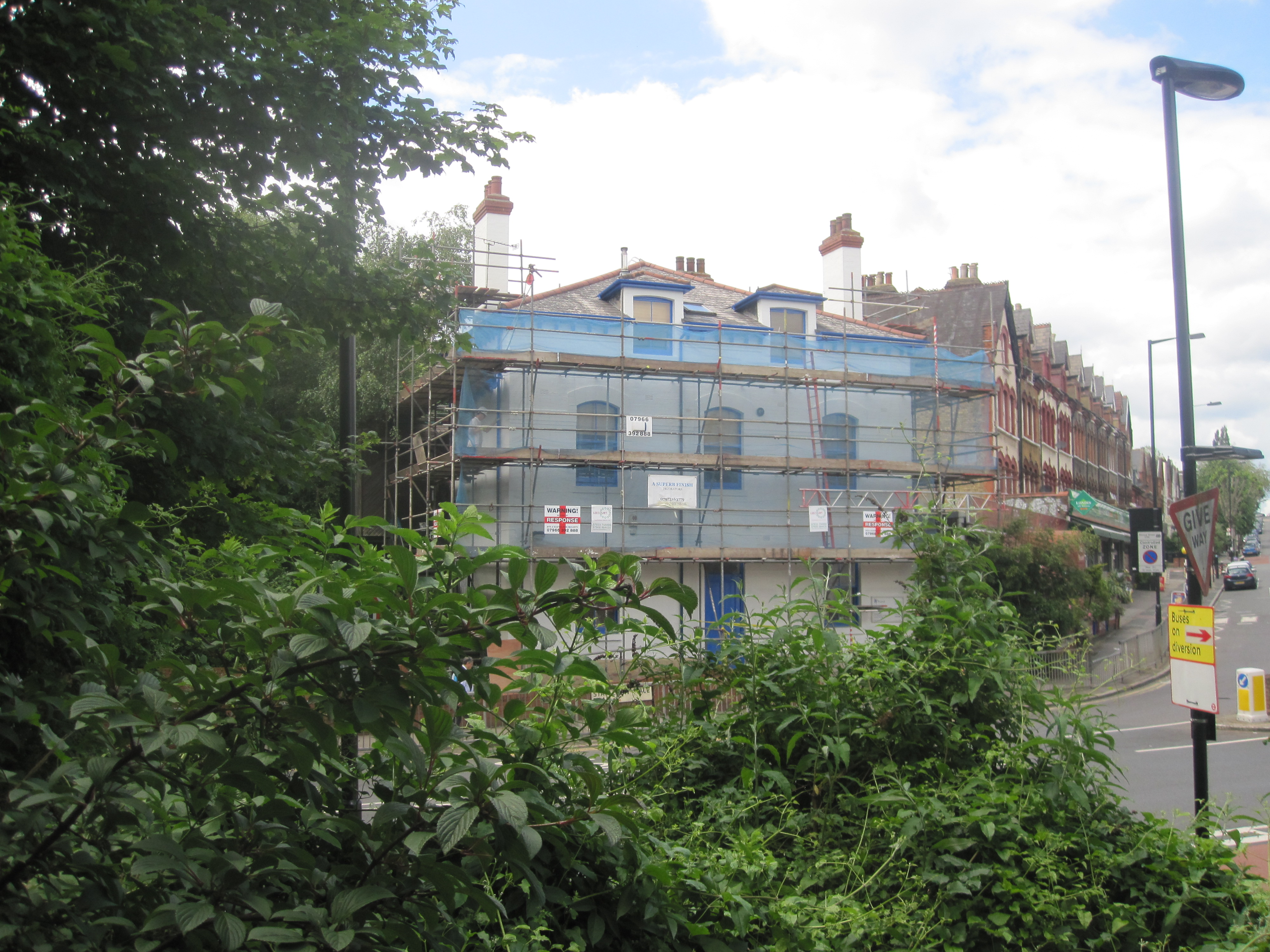 Go back down the Avenue away from the palace, and turn right on Vallance Road, right on Talbot Road, and right on Alexandra Park Road. Bear left on Palace Gates Road. Walk along the left hand side of the road to see Bounds Green Depot and the former site of Palace Gates Station.