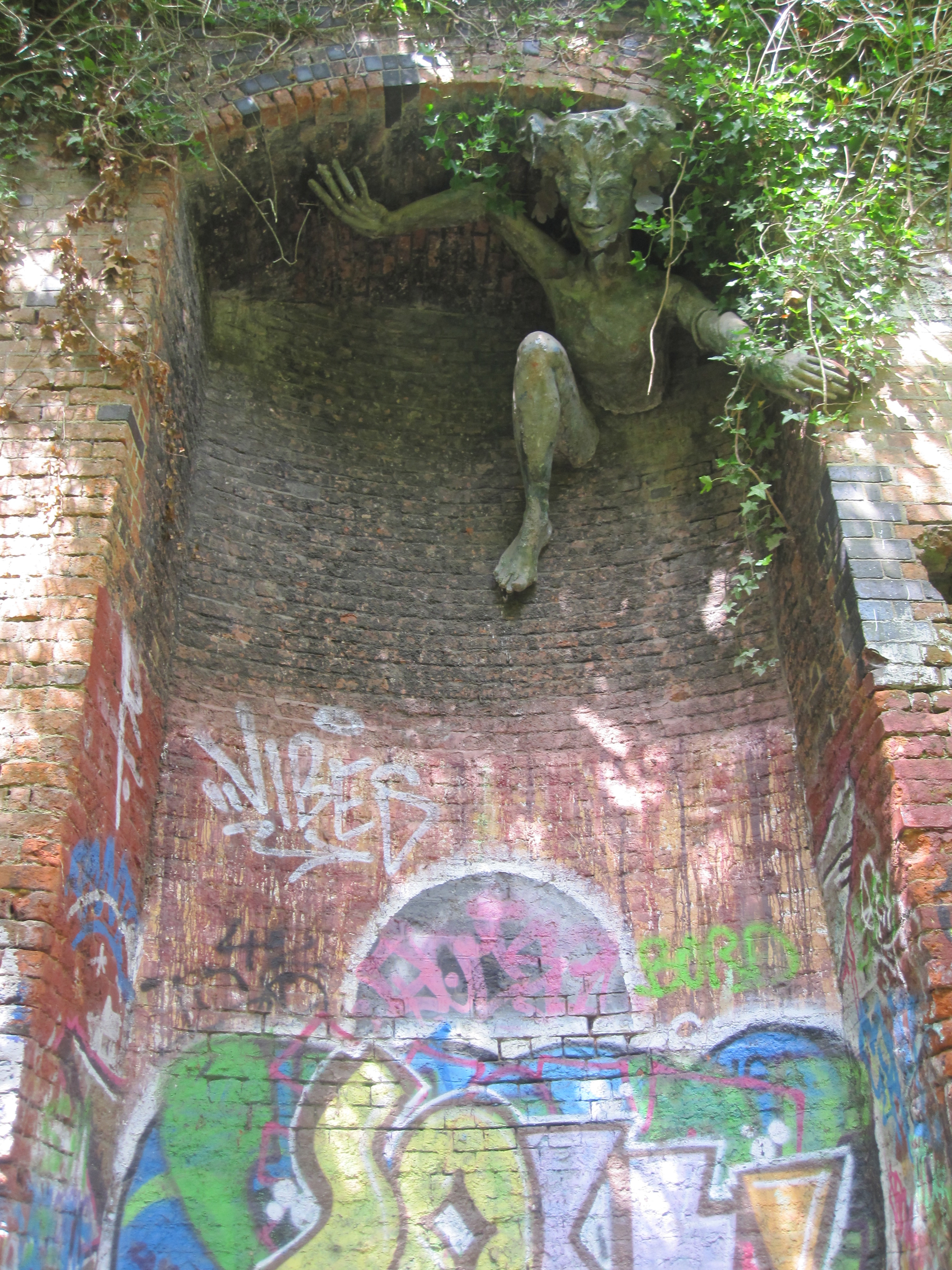 Continue under two bridges, and just before the next footbridge, make sure you stop and look right to check out this artwork by artist Marilyn Collins.