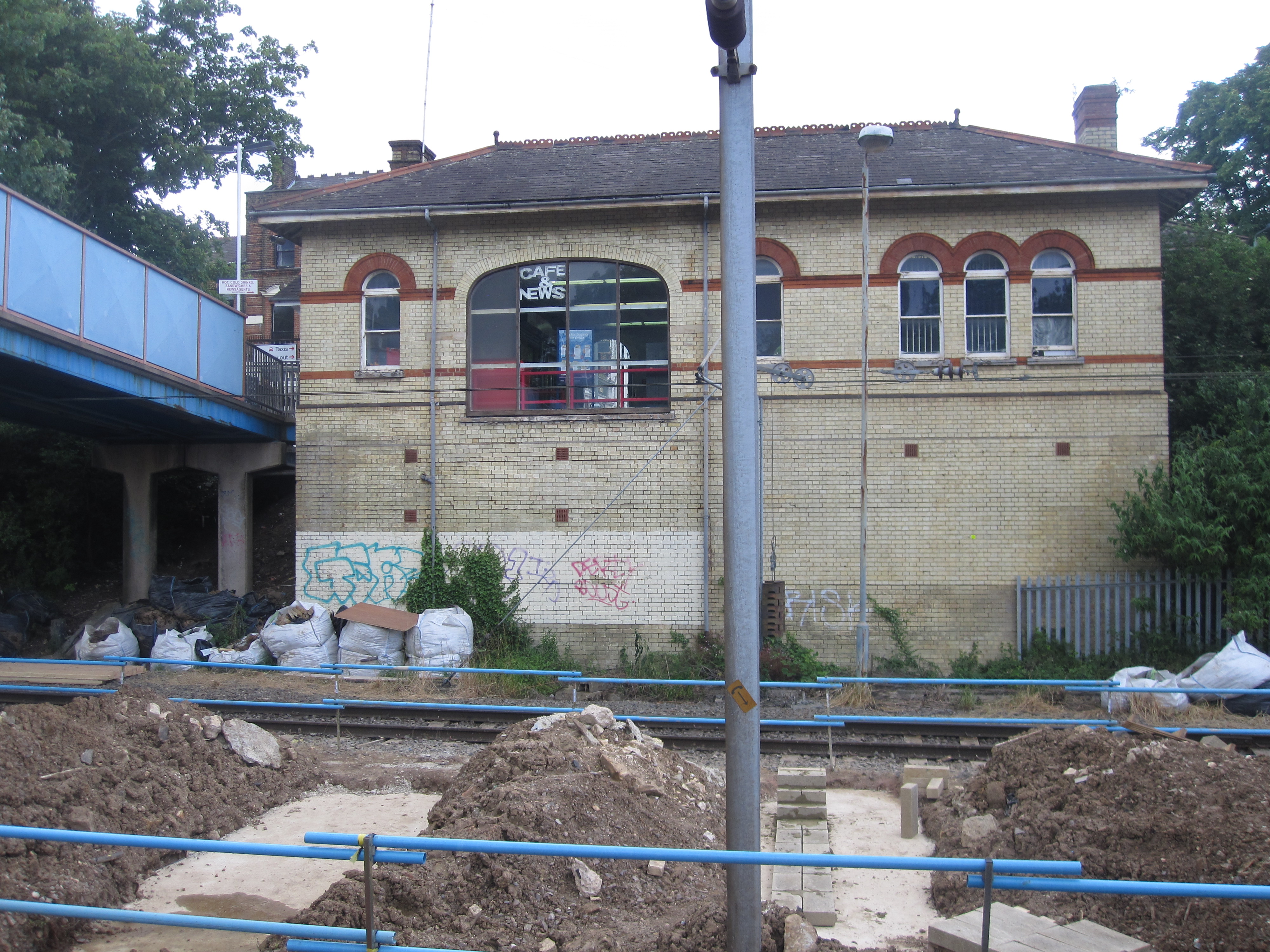 Continue along Bridge Road, turn right at the end and head straight to the current Alexandra Palace station. This one is still in use and offers very frequent services back to Central London.