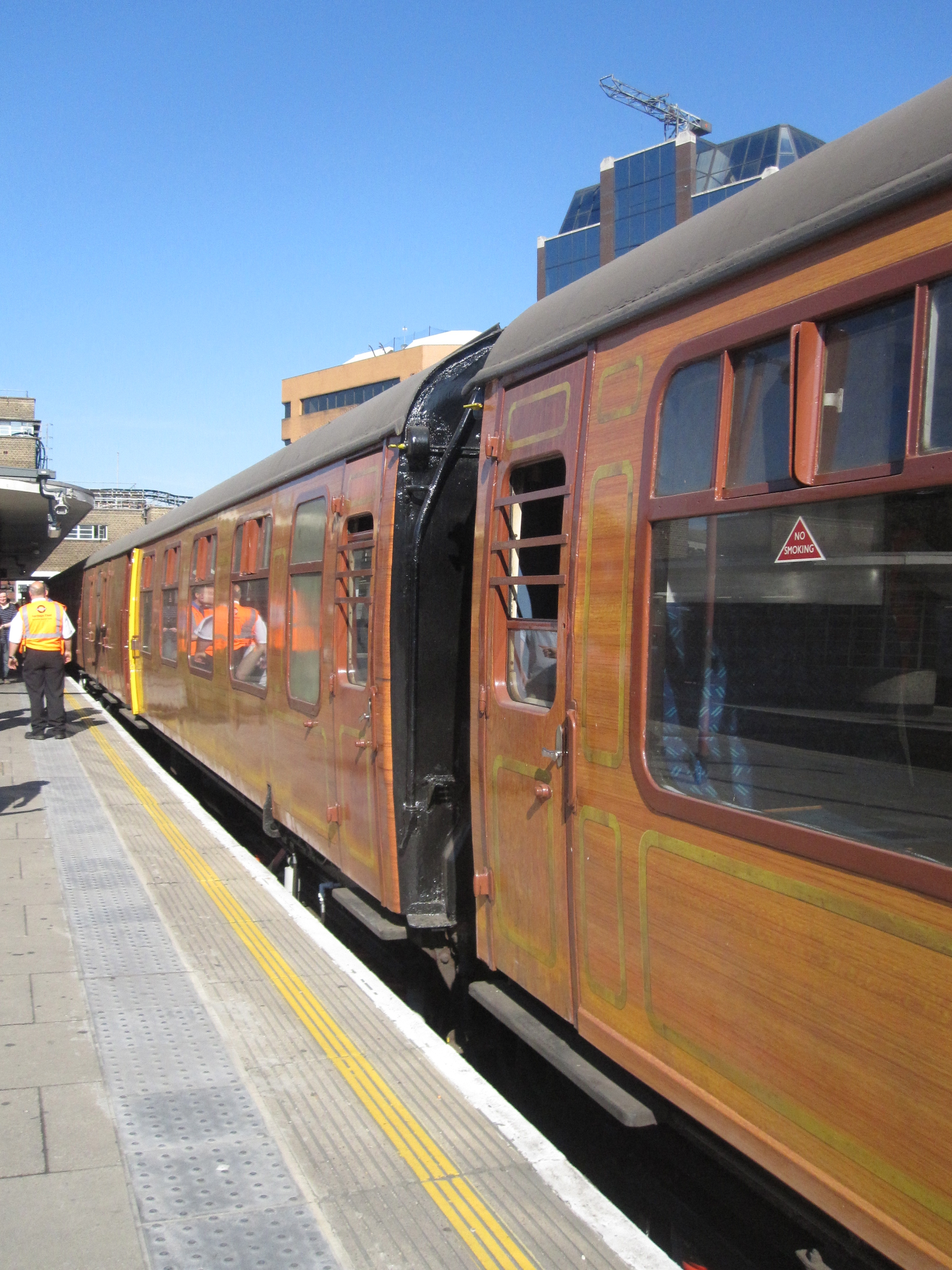 As we waited, a new S-stock Metropolitan line train pulled up on the left, next to the original carriages. 149 years of tube history on the same platform.