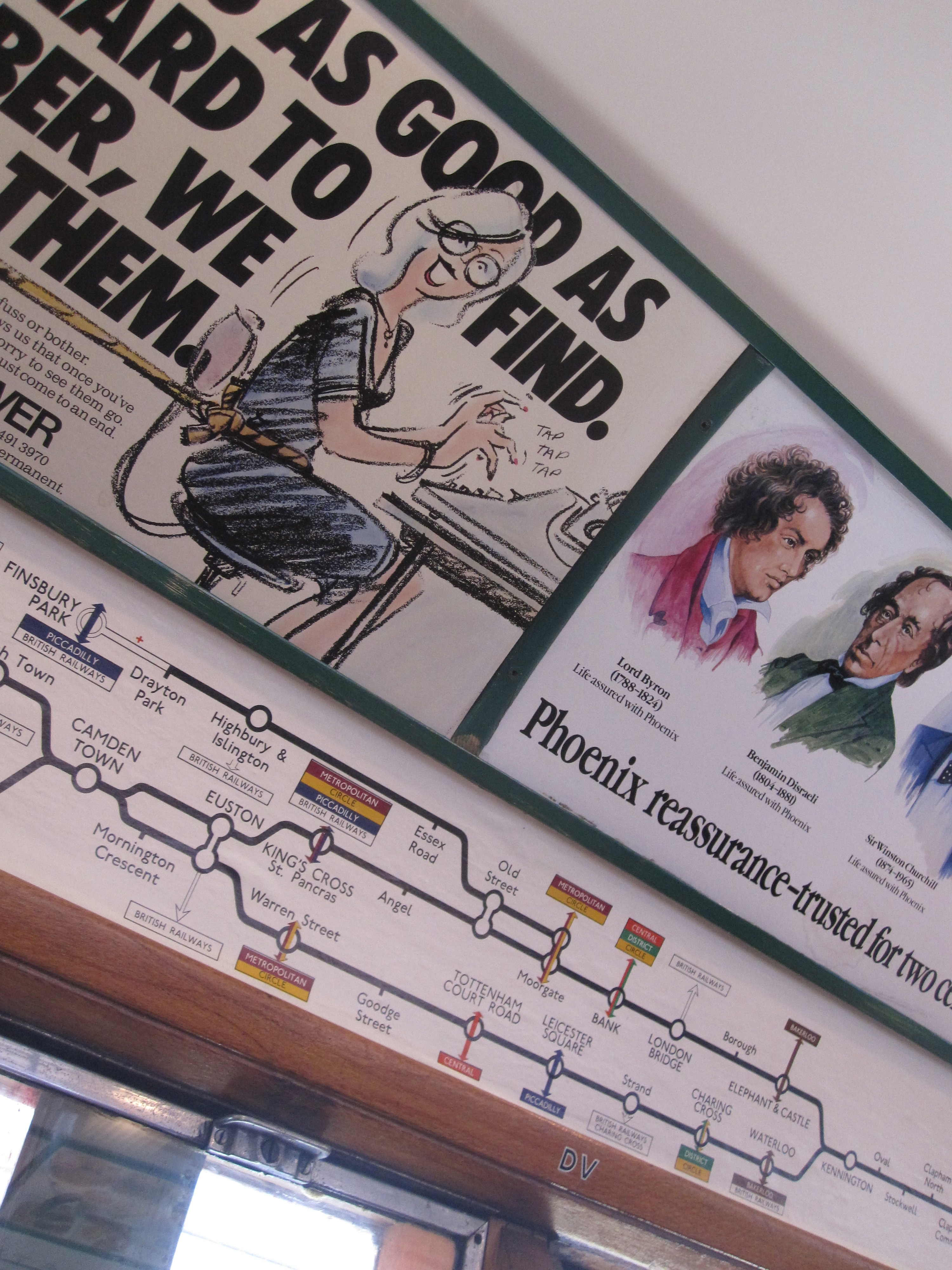 It is confusing, though, as to how renovated they were. The train we took specifically said it was in service until 1988, but the carriages had maps for the underground which still listed Charing Cross with District and Circle interchange on it and no Bakerloo or Jubilee lines, and did not list it as Charing Cross (Embankment). Charing Cross was “taken off” the District and Circle Lines and became the Northern line Strand station in the early 70s (and later, also the Bakerloo line Trafalgar Square station, and terminus of the Jubilee line.) By 1976, Charing Cross and Embankment were two separate stations, so it seems odd that the train would run in 86-88 with inaccurate maps. Or was that just vintage TFL at it’s finest?