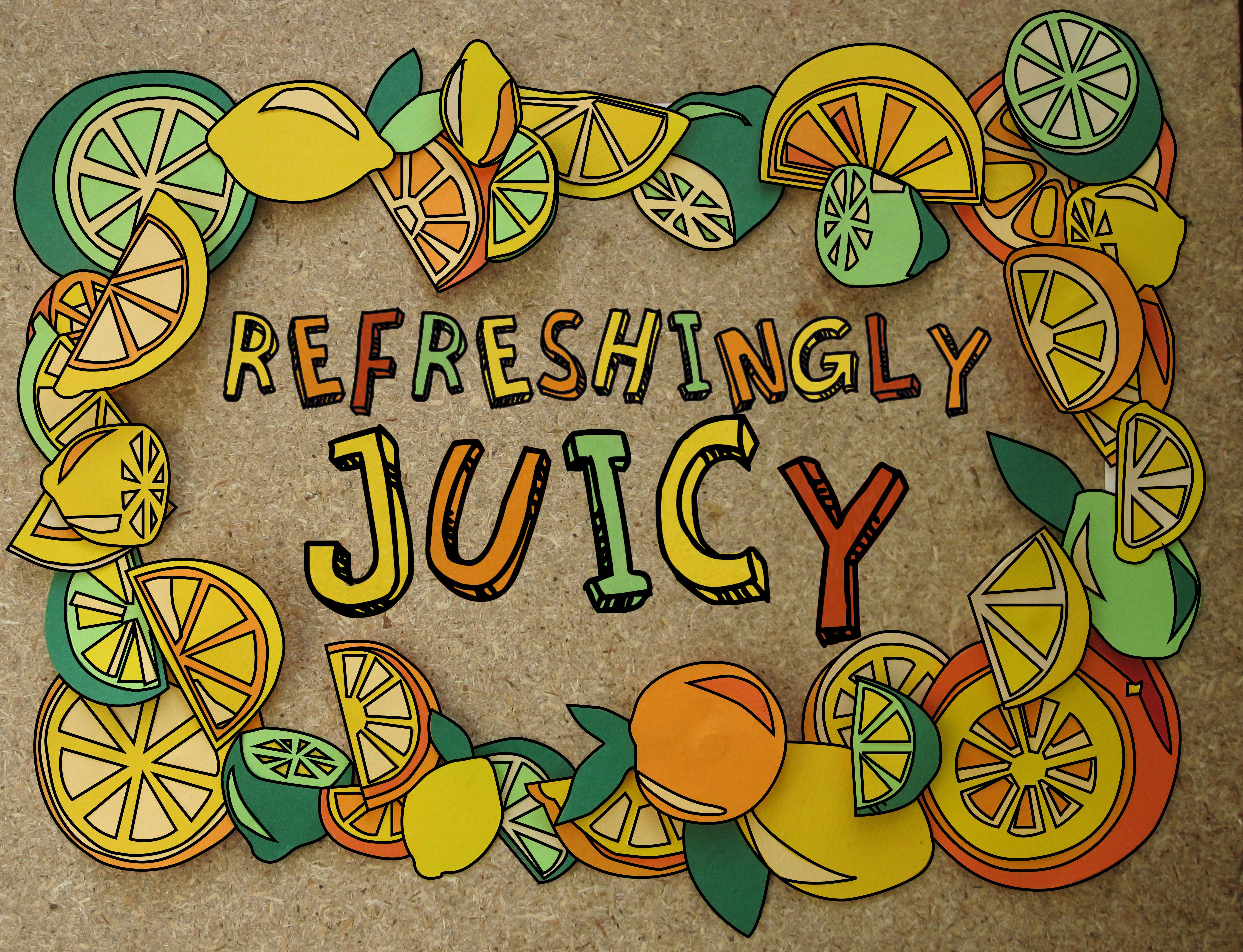 Refreshingly Juicy February 1, 2013 · by makingthemarrow Here’s the final bits of the juicy paper fruits. Couldn’t actually decide which way I liked it best, so options are below: A little outline: A little more outline: Fully outlined: Cropped outside: Share this: Share on X (Opens in new window) X Share on Facebook (Opens in new window) Facebook Like Loading... Related
