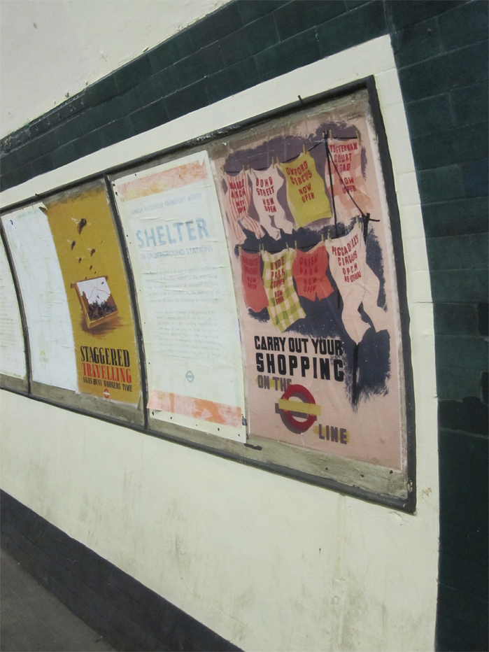 Then we moved on to the second platform which was closed in 1914. The station closed posters are still glued to the walls, and you can see different tile pattern experiments at one end of the platform (including the very recognizable tile patterns from Piccadilly Circus!) There are a lot of lovely old vintage posters on both platforms.