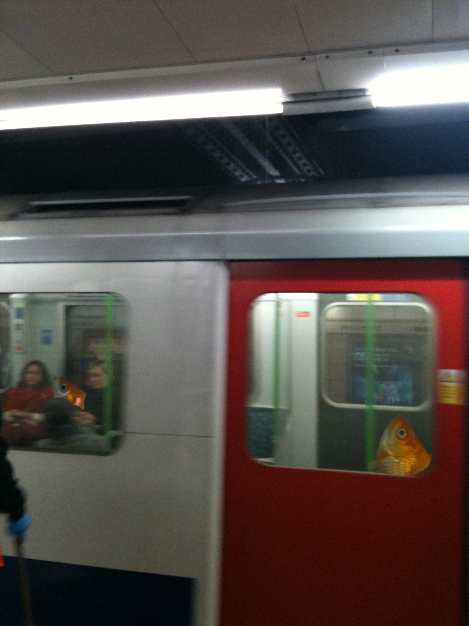 Taking the tube to work. Bob kindly stands and lets Ellie sit as he’s a gentlefish.
