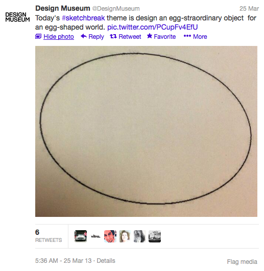 The Design Museum does an excellent twitter activity every Monday at lunchtime (UK lunchtime obvs!) where they set you a drawing challenge to complete on your lunch break. Normally it’s things like ‘draw your lunch,’ ‘draw a postbox,”draw the jewelry you’re wearing,’ you know, reasonably normal things to draw.