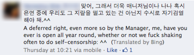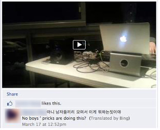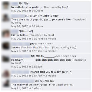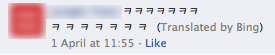 Now, I always enjoy a bit of Bing translation on facebook. Finally my smarmy multi-language friends can’t have their little secret messages in “code,” safe in the knowledge that in order to know what they are saying, I’d need to copy and paste the text and put it into altavista babbelfish. It’s messy. Now I can just click ‘see translation’ on facebook and Bing will translate everything for me, from their language straight into English. Which is great!
