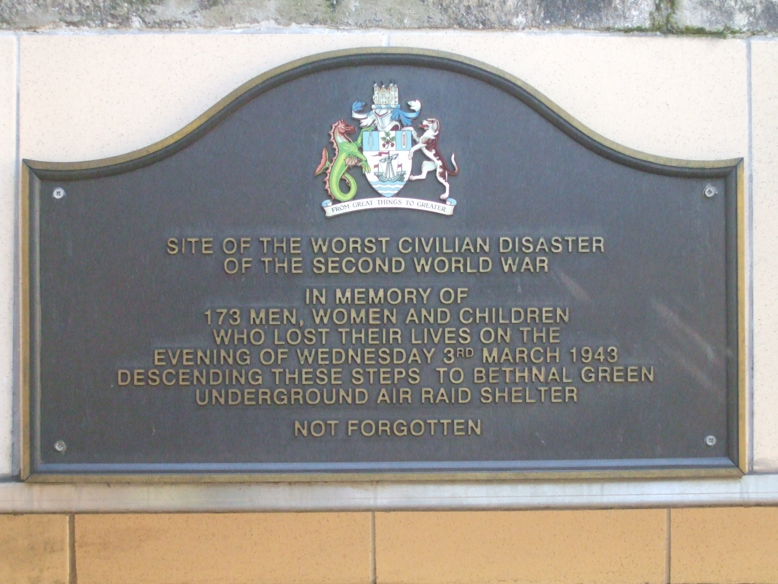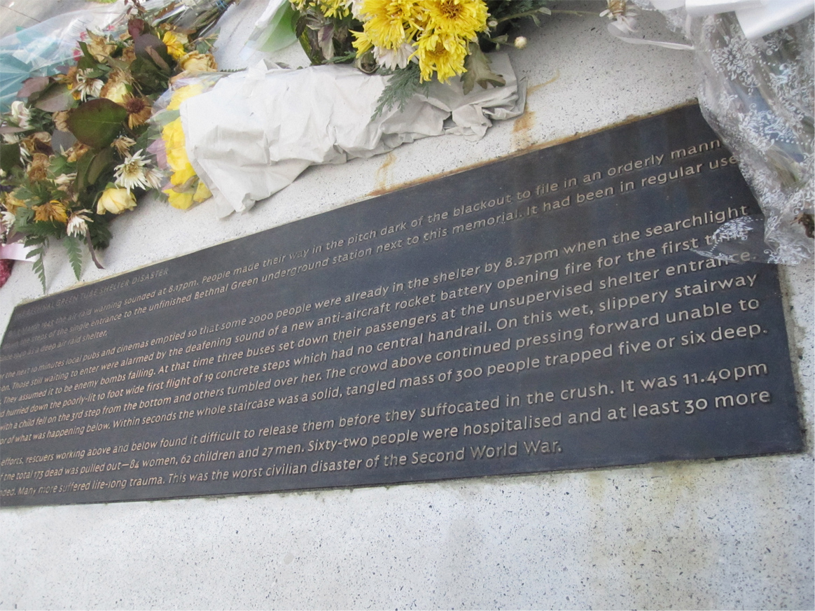 In the 1990s, a plaque was placed on the staircase to acknowledge and honour the victims, but it wasn’t until this year that a proper memorial was dedicated to honour the victims. The memorial is not yet complete – more money is needed to finish the structure – but on 3rd March 2013, 70 years to the day of the disaster, relatives and friends finally had a public place to acknowledge their grief.