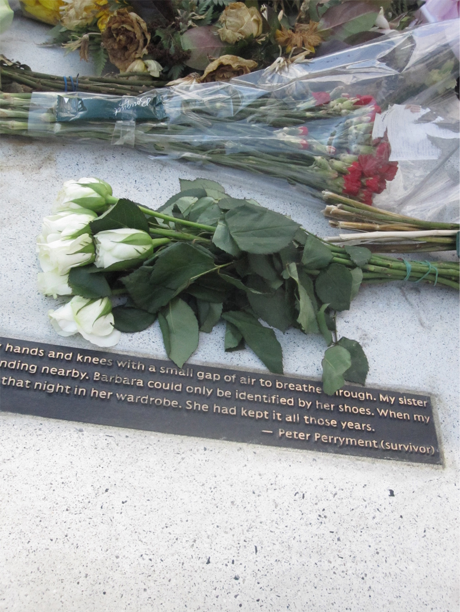 The monument is very impressive. It was quite moving to see all of the floral tributes, and to realize how many people who are still living lost family on that night.