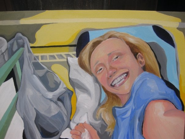 The paintings are all based on photos she has either found, or posted, on Facebook.
