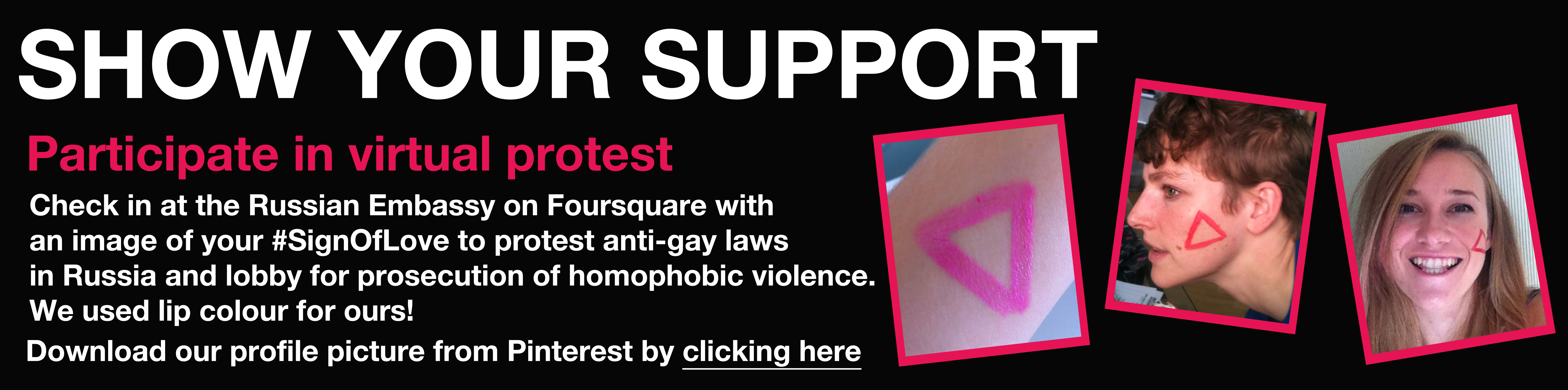 Why are we doing this? Well, we’re supporting All Out, a global gay rights campaigning organisation. In response to Russia’s new anti-gay legislation and the anti-gay attacks that they have provoked we encourage people to show their support for LGBTQ people and to sign All Out’s petition.