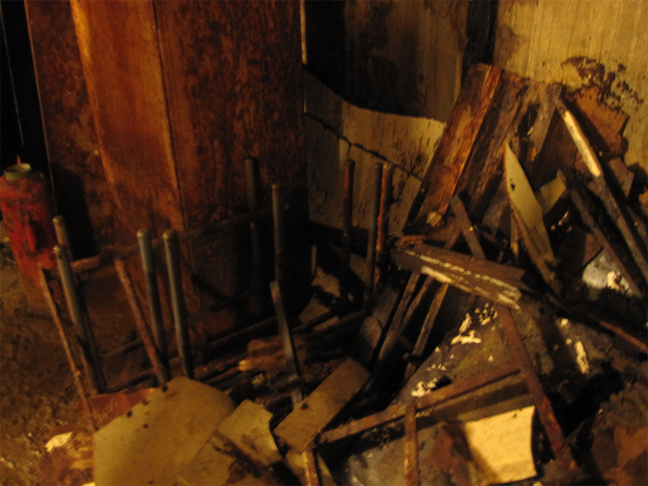 There are a lot of remnants of wooden furniture which have been rotted away by the excessive amounts of water in the bunker.