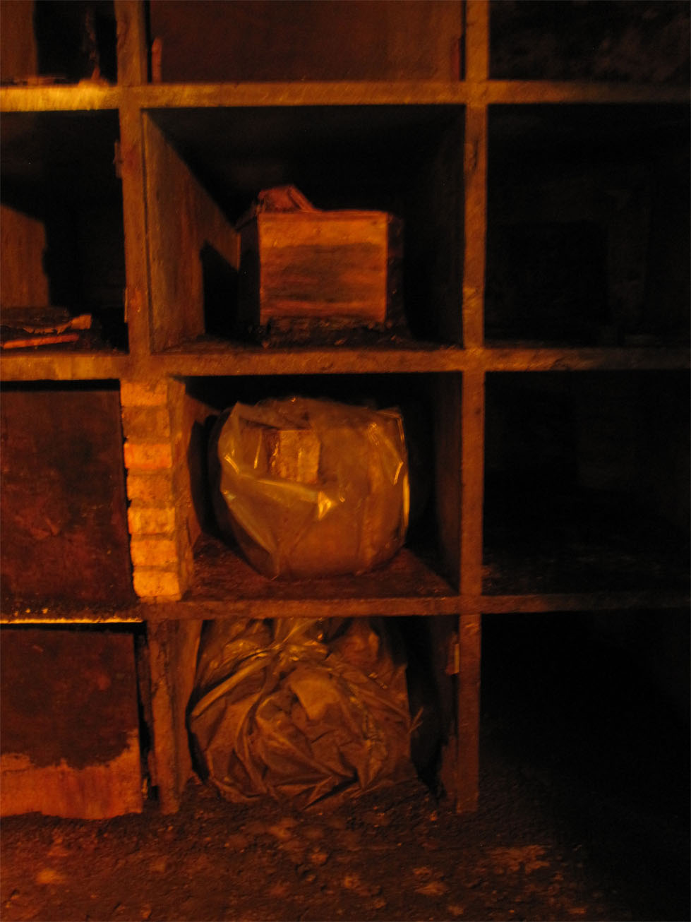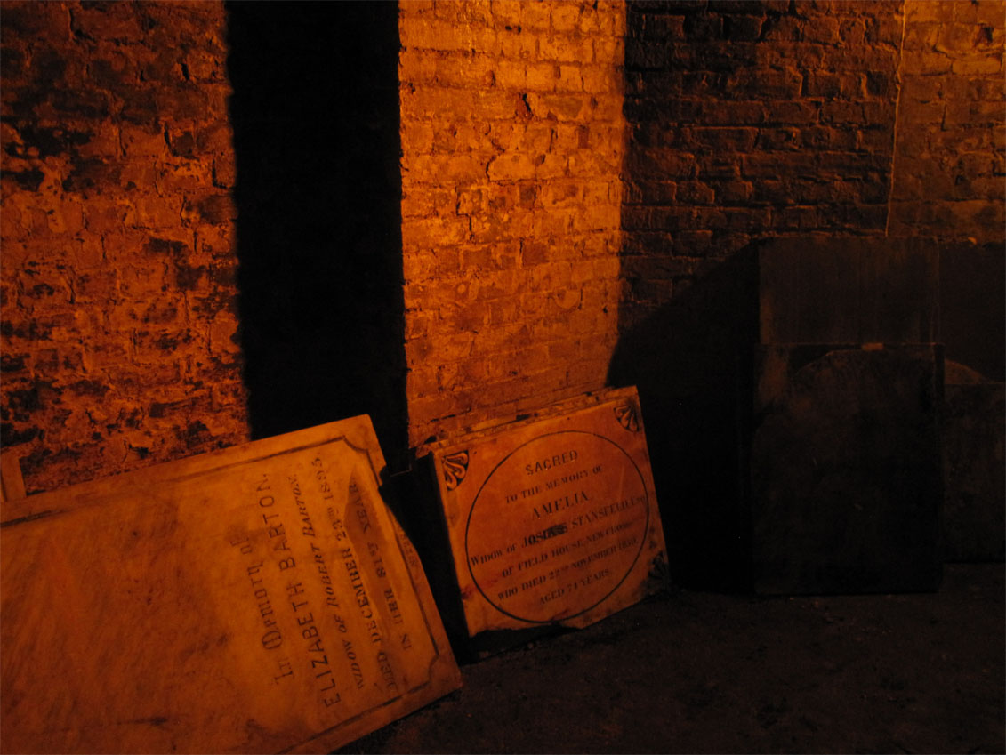 Two examples of coffin in this one, wood (on top) and lead (bottom.) I’ve been in many a crypt but did not expect to be quite so intimate with 150 year old bodies.