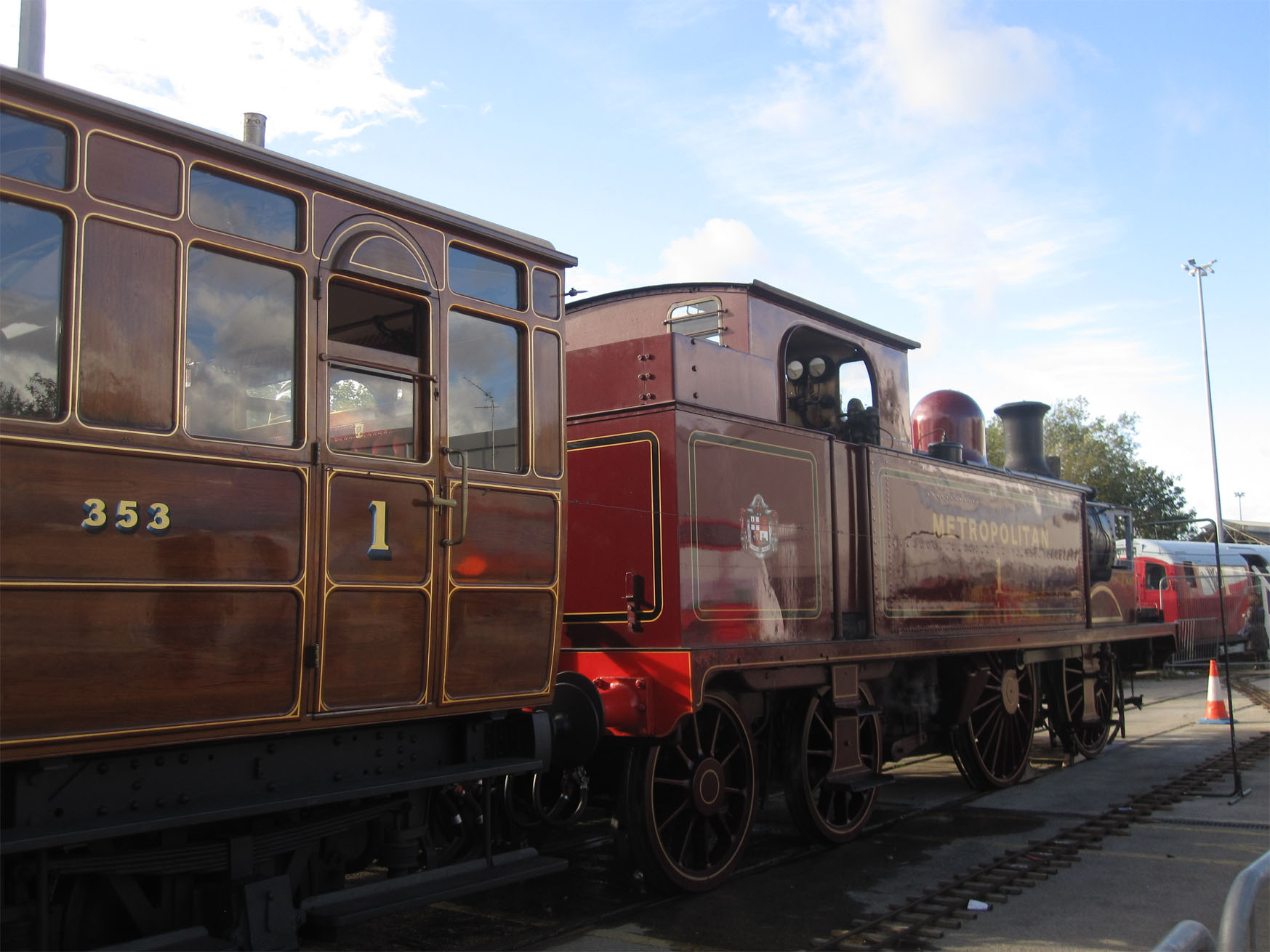 Below: Older Met Carriages – including the lovingly and painstakingly restored Coach 353. You can read about one of its outings here. It’s one of the (if not the) oldest tube coach in the collection, and dates from 1898-1900.