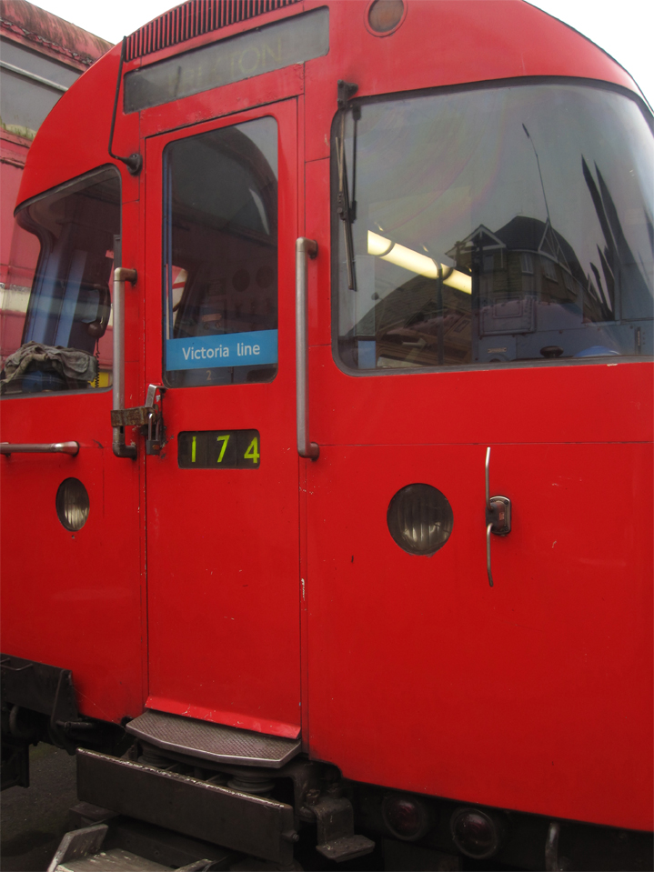 Inside objects are piled on top of each other and compete for your attention, but here are some highlights – in particular, this wooden sign! If I understand correctly, on the date of the official opening of the Victoria line one of these was hung on the front of each of the first trains. The museum happens to have one of these signs, and the other one is in the London Transport Museum’s Acton Depot.