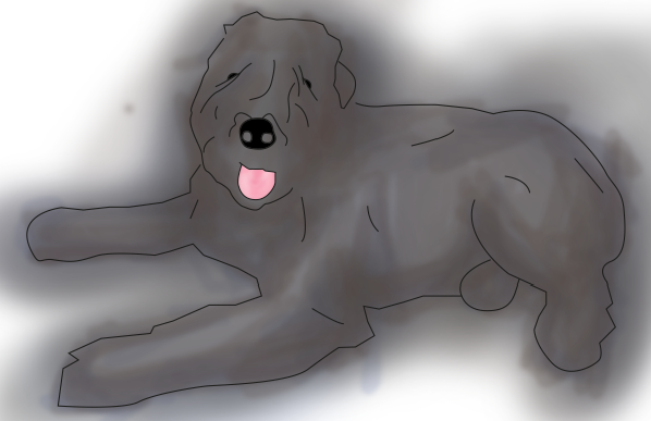 Then the process moved towards the dog. I had never drawn a dog in this manner before, but found that a bigger brush was ideal for getting the roughness of his fur.