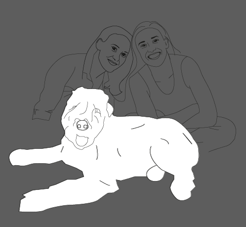 Then came the merging of the dog and the humans. Not in a creepy way (except I noticed later that after I flipped the image, it really looked like my sister’s arm was up the dog’s butt.)