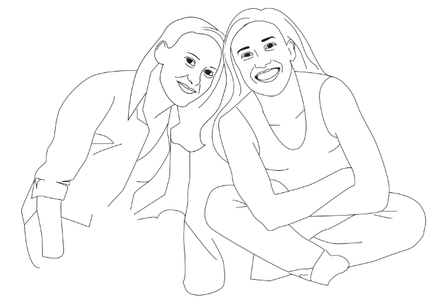 The joined colour version – I ended up copying and pasting a duplicate of the colour layer to make the colours on my sister and I pop.