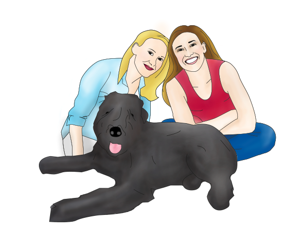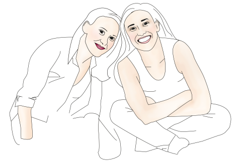 Fortunately I had done some previous illustrations for a good friend’s wedding, so I set out to draw myself, my sister, and the family bear instead of using a photo. I did it by tracing the basic outline of one of the decent photos of my sister and myself in Illustrator, and then adding in our features and drawn elements.