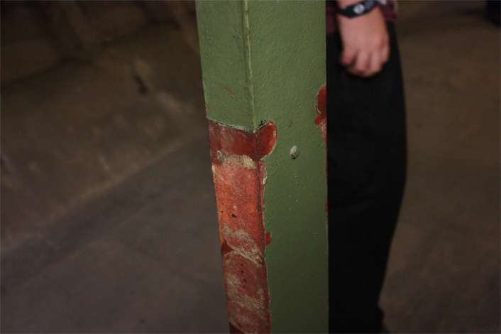 Here, in the bathrooms, you can just see where the urinals attached to the wall.