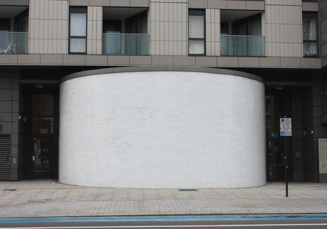 How the tunnel appears from outside; the white roundhouse is the South end of the tunnels and is rather cleverly incorporated into the modern block of flats which surrounds it. The rougher cement roundhouse is the more Northern end of the deep-level tunnels.