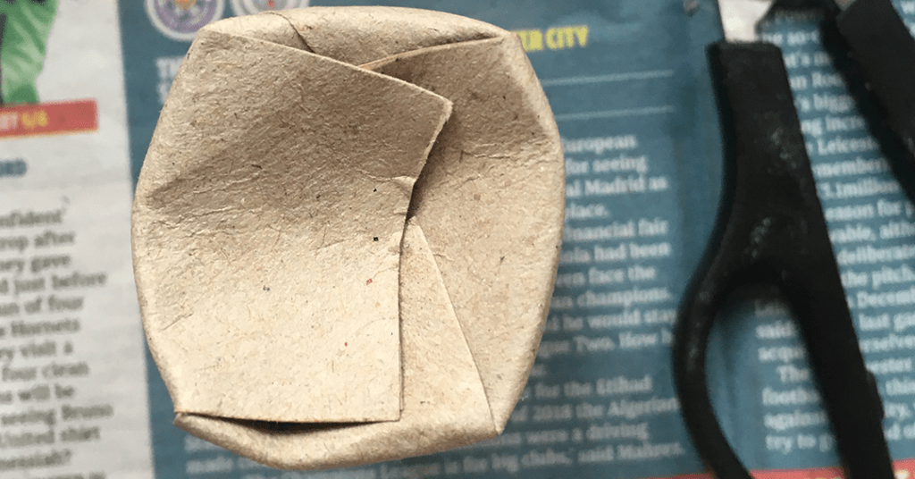 Then, fold in the flaps until they cover the bottom of the tube. Press them in slightly, so that they push on each other and form a base for the tube. Push the bottom of the tube down on a table to get a firm and mostly level bottom.