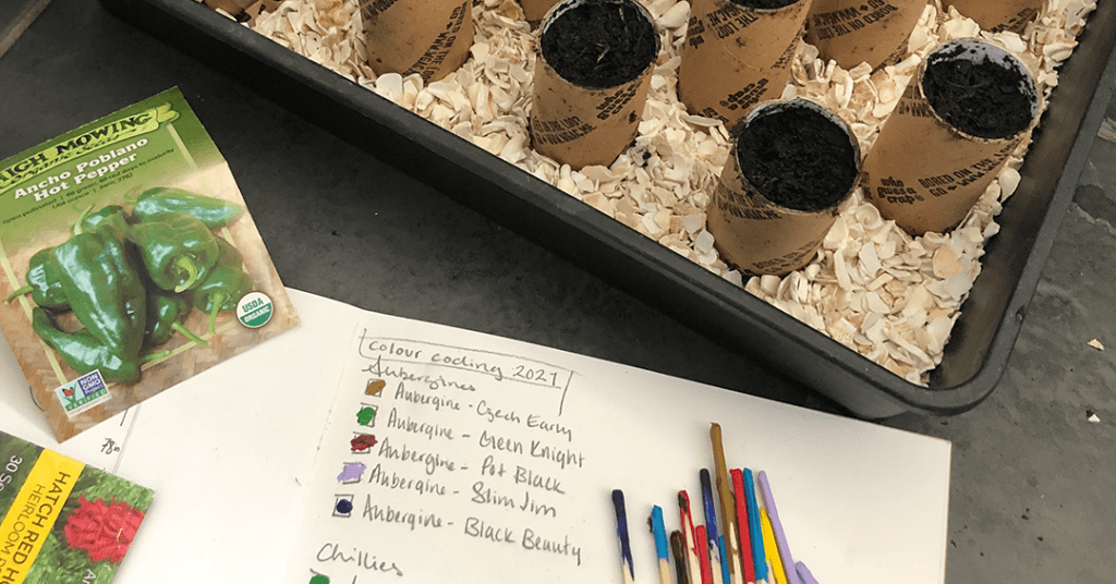 PS – you’ll notice a colour coding system in the last picture! As a candle loving artist, I save my old matches for seedling season, and dip them into different coloured acrylic paints so that each seedling stays identifiable. This stops the name of the plant from coming off of its label in the humidity of the propagation lot. Just make sure you don’t lose the key!